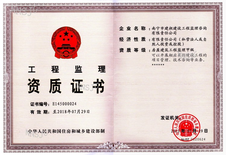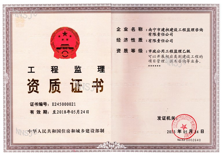 公司名稱:南寧市建昶建設工程監(jiān)理咨詢有限責任公司