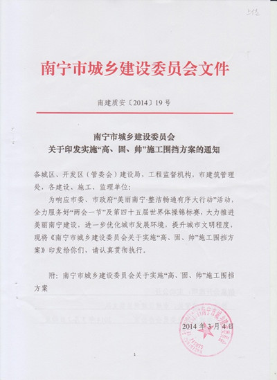 下一篇:《關于印發(fā)南寧市城鄉(xiāng)建設委員會2014年打擊工地亂象暨揚塵污染治理工作要點的通知》