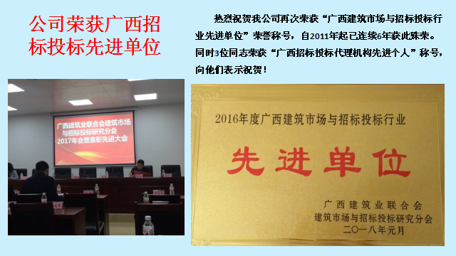 上一篇:熱烈祝賀我公司再獲廣西招標投標行業(yè)先進單位
