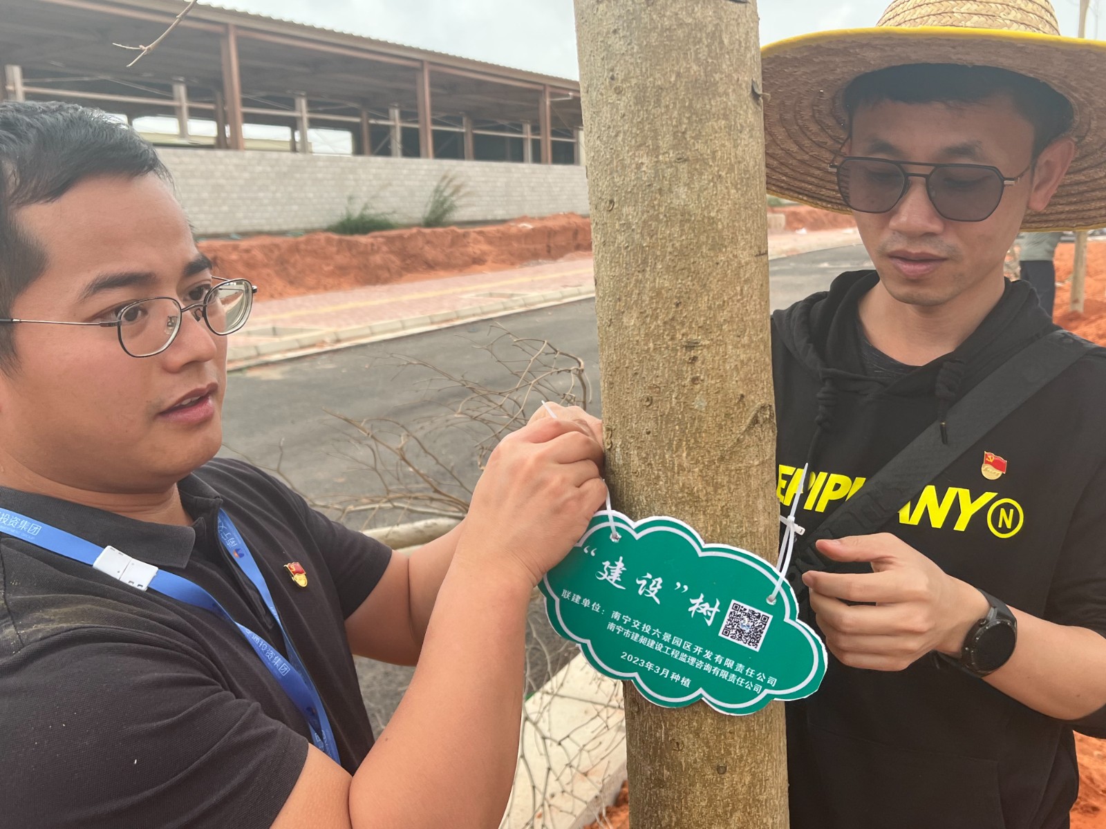 在活動現(xiàn)場,50余名黨員和積極分子、青年志愿者一道齊心協(xié)力,栽下了友誼之樹。大家干勁十足,揮鍬鏟土,扶樹培苗,澆水灌溉,一片忙碌景象。經(jīng)過一陣辛勤勞動,雖然每個人雙手、鞋子都沾滿了泥土,但看到一棵棵新植的小葉欖在南寧東部新城六景工業(yè)園區(qū)五個產(chǎn)城項目緯十一路綠化帶上昂然挺立,大家充滿了成就感和自豪感。